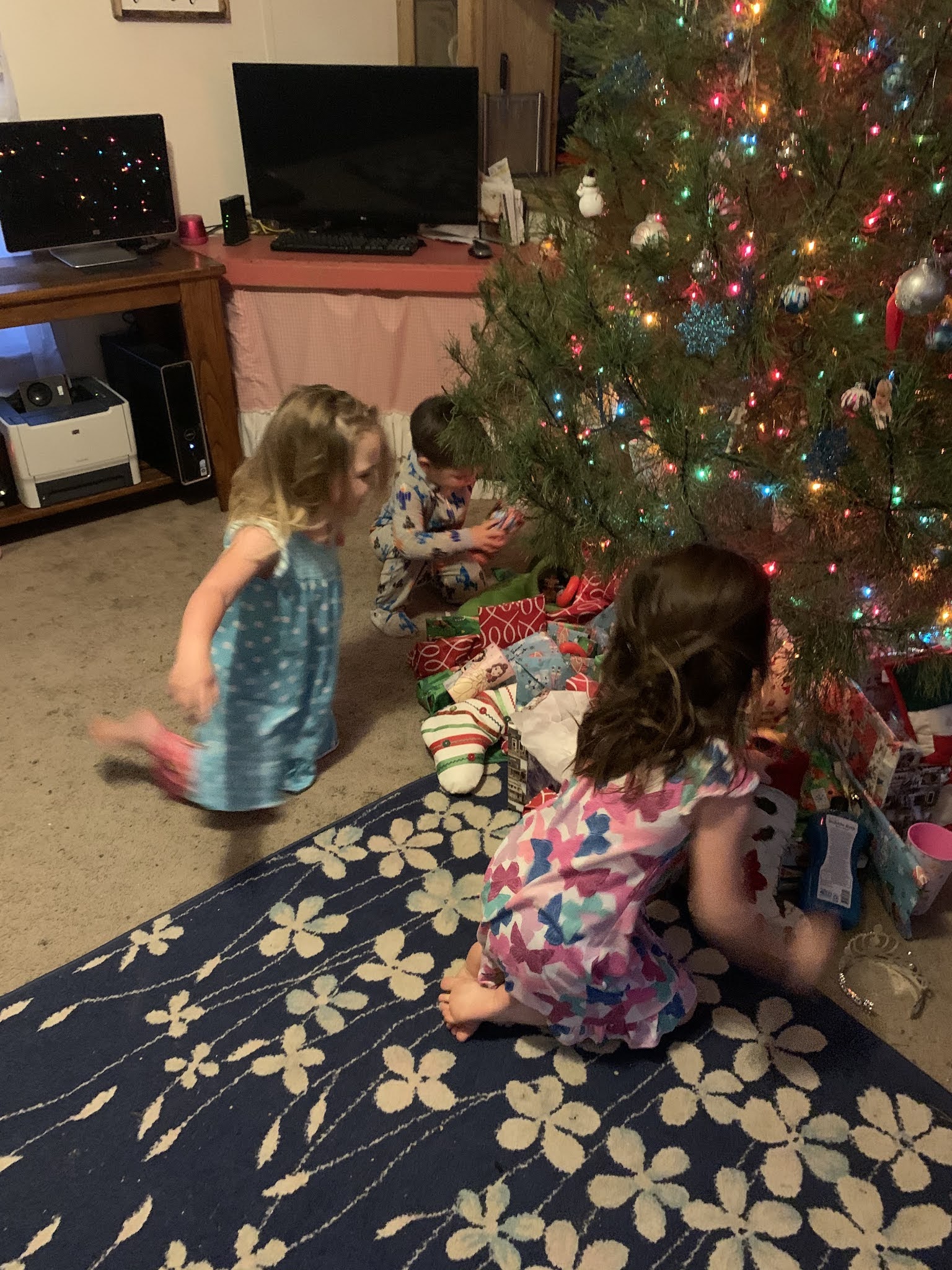 Cyrus was shocked that we stopped and cut a tree from someone's property. (the tree farm)